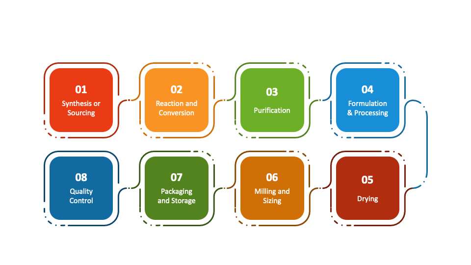 API manufacturing involves raw material selection, synthesis, purification, testing, and